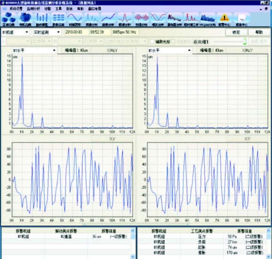 本系統(tǒng)具有全面、豐富的設(shè)備狀態(tài)監(jiān)測、分析和故障診斷手段,涵蓋了穩(wěn)態(tài)分析、瞬態(tài)分析、截面數(shù)據(jù)融合分析和非穩(wěn)態(tài)專用分析等專業(yè)分析工具,同時(shí)配備了基于神經(jīng)網(wǎng)絡(luò)算法的故障診斷專家系統(tǒng),可對不平衡、不對中、熱變形、動(dòng)靜摩擦、軸瓦損壞、油膜失穩(wěn)等故障進(jìn)行診斷,并提供多達(dá)6平面11測點(diǎn)的動(dòng)平衡解算與結(jié)果優(yōu)化。